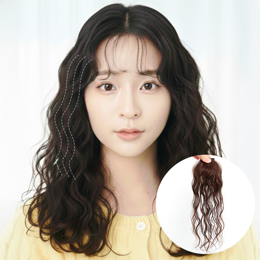 - 매일매일 새롭게 스타일링하는 데일리 멀티피스! 고데기나 헤어롤로 컬을 만들어 애교앞머리로 착용해보세요. 간단한 피스가발로 새..